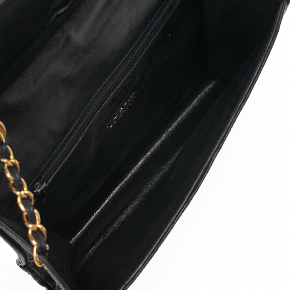 CHANEL Chain Shoulder Bag Matelassé Coco Mark Fringe Lambskin Black Gold-Tone Hardware, Pre-Owned
