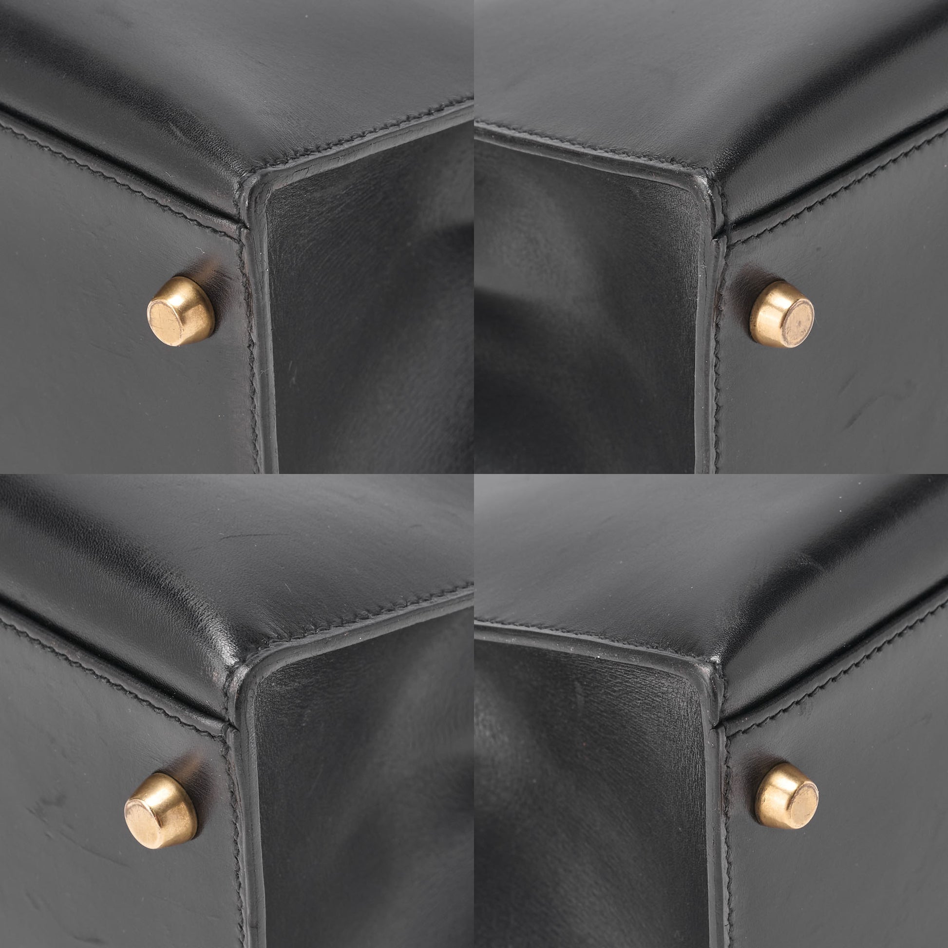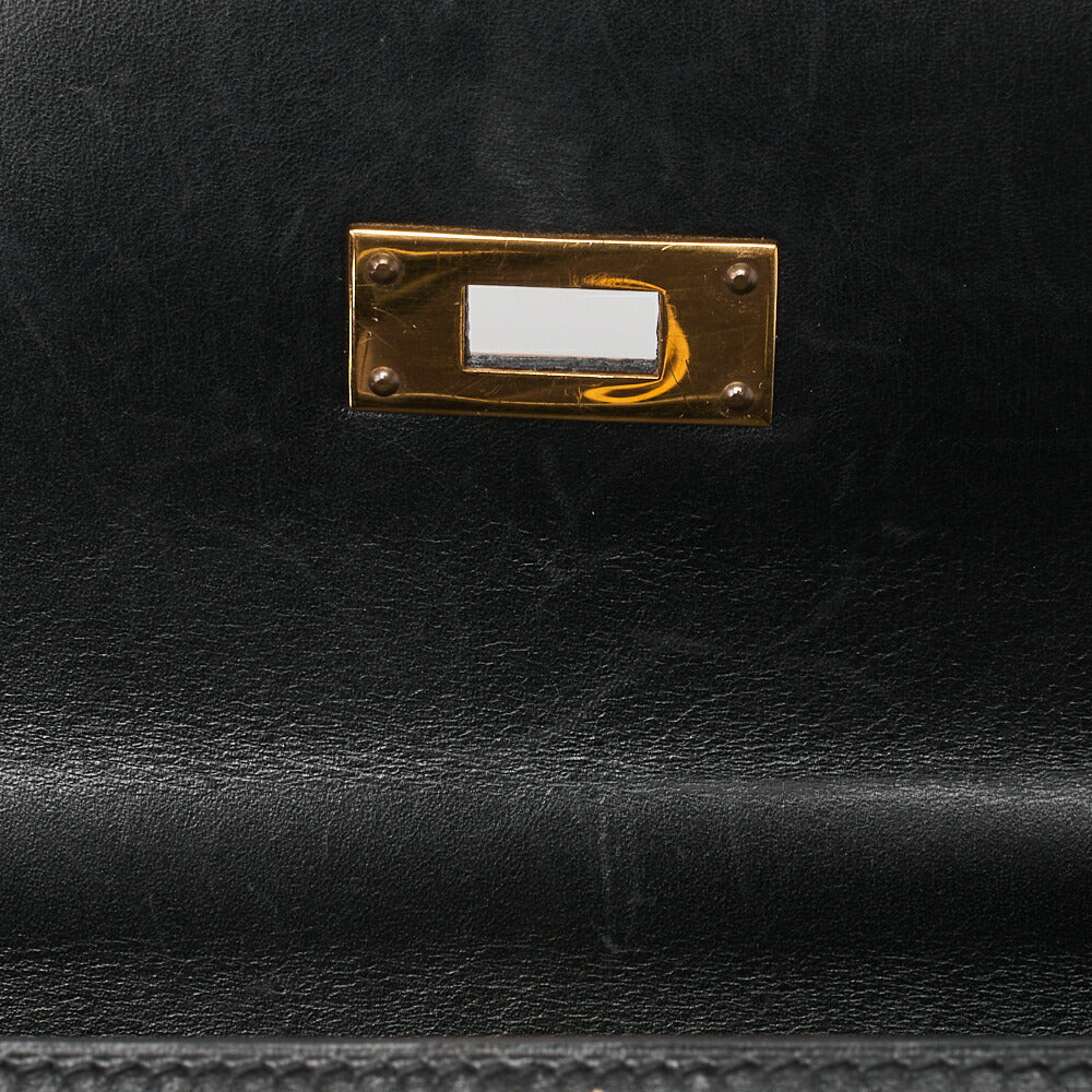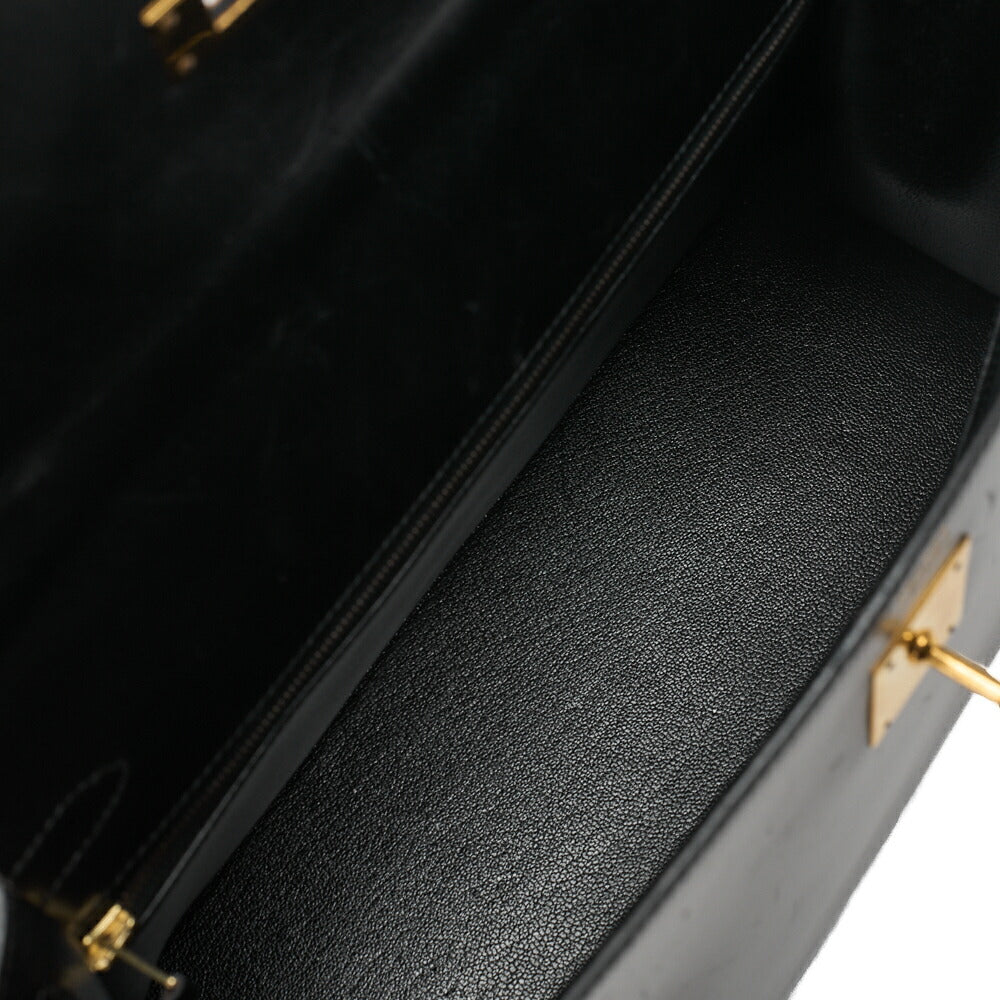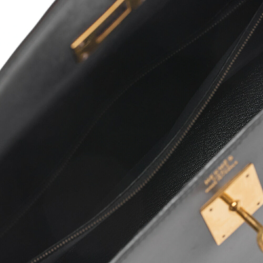 HERMES Kelly 32 Handbag Box Calf Black Black Exterior Stitching Gold-Tone Hardware, Pre-Owned
