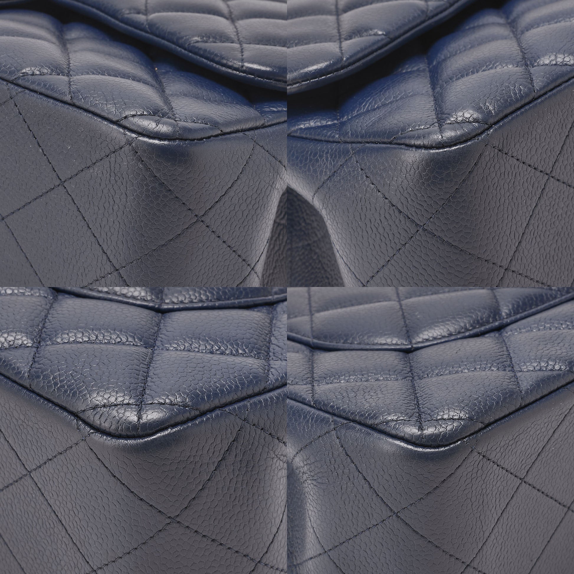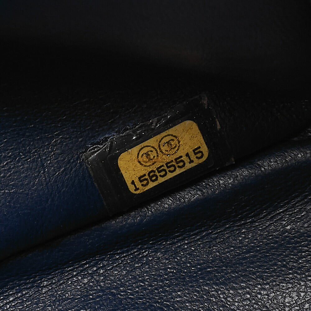 CHANEL Chain Shoulder Bag Double Flap Deca Matasse 30cm Caviar Skin Navy Silver-Tone Hardware, Pre-Owned