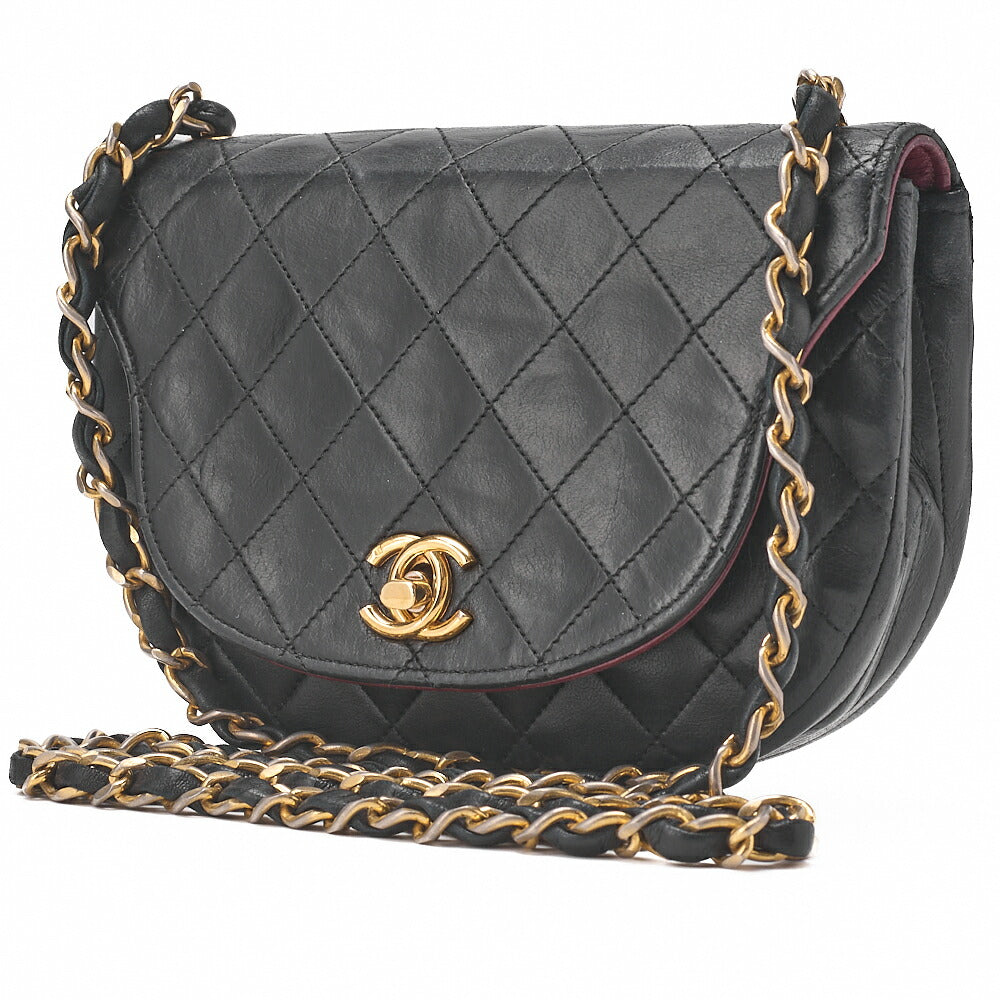 CHANEL Shoulder Bag Mini Matelasse 17cm Lambskin Half Round Flap Black Gold-Tone Hardware, Pre-Owned