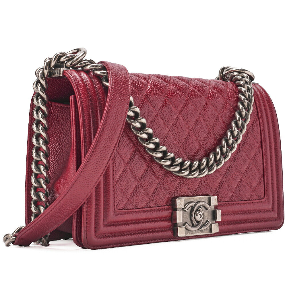 CHANEL Boy Chanel Matelassé Chain Shoulder Caviar Skin Red Silver-Tone Hardware, Pre-Owned by CHANEL delivers timeless luxury and versatile style for everyday city wear.