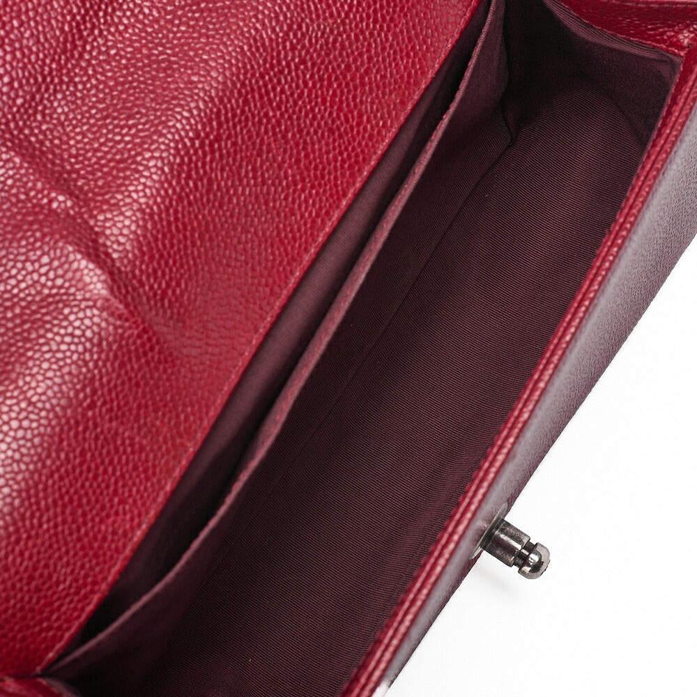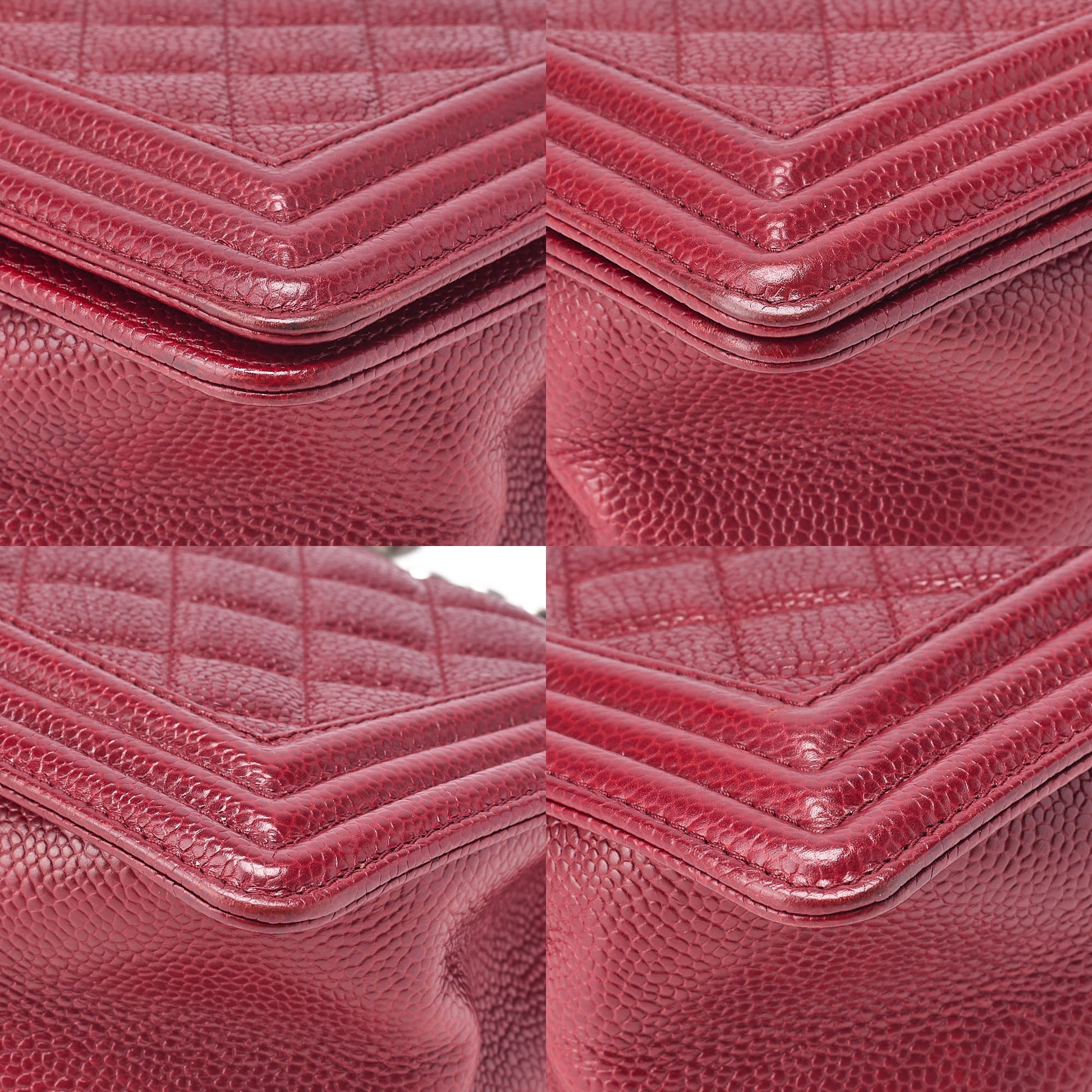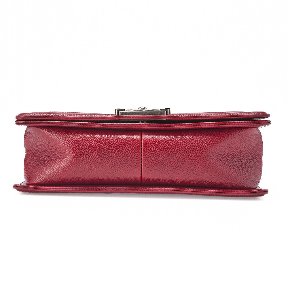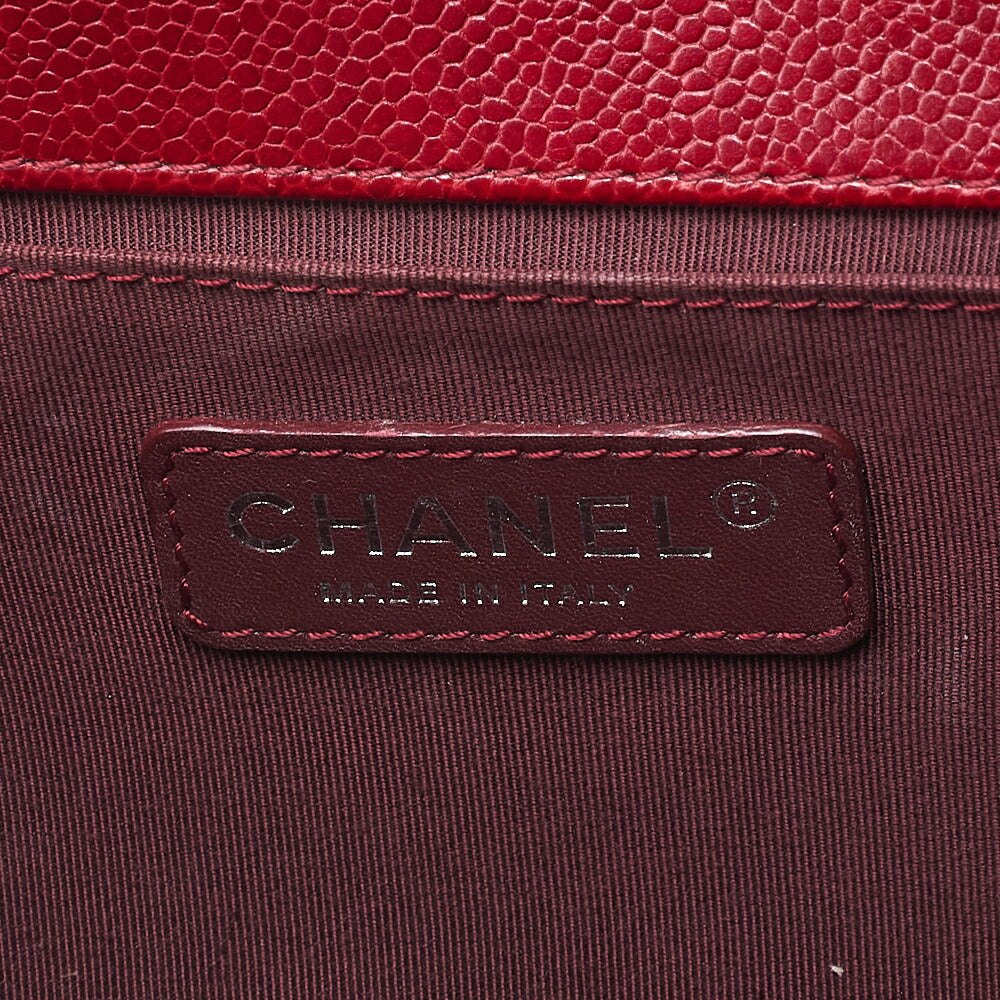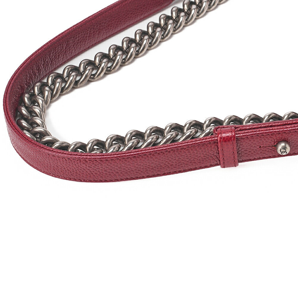 CHANEL Boy Chanel Matelassé Chain Shoulder Caviar Skin Red Silver-Tone Hardware, Pre-Owned