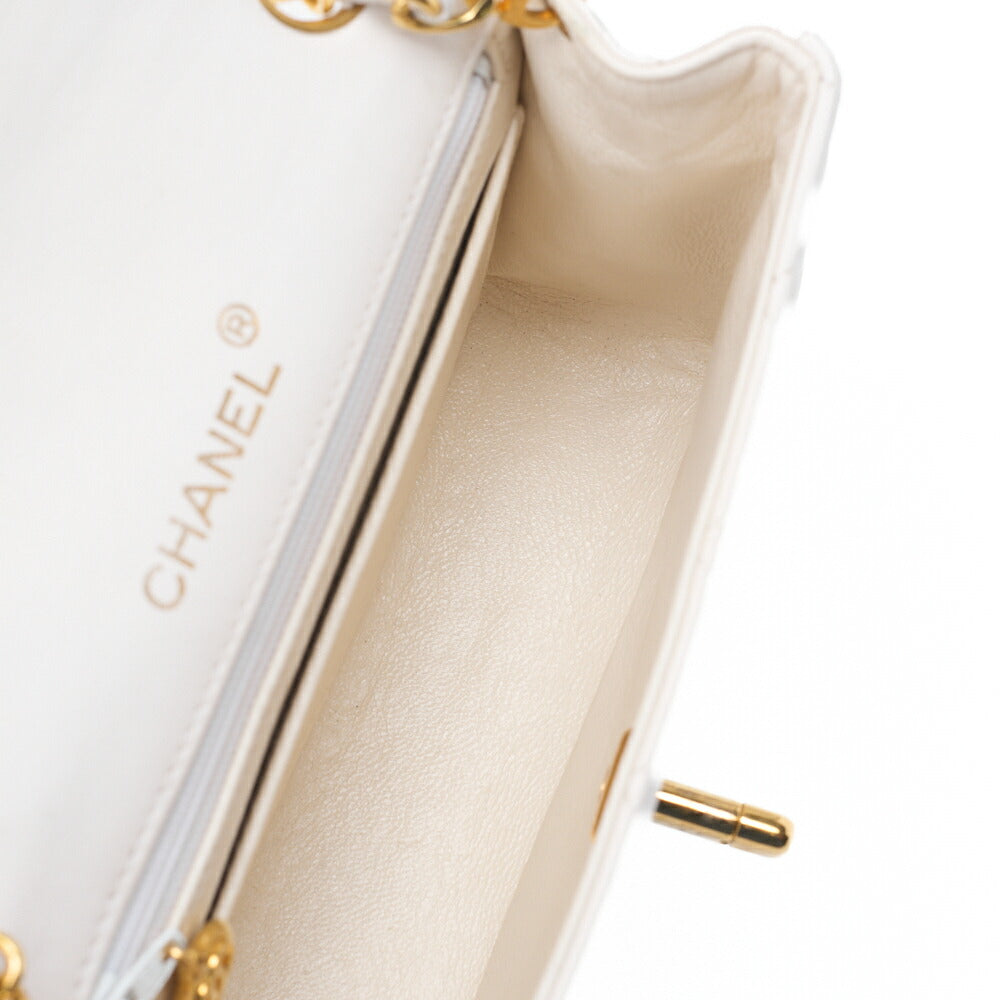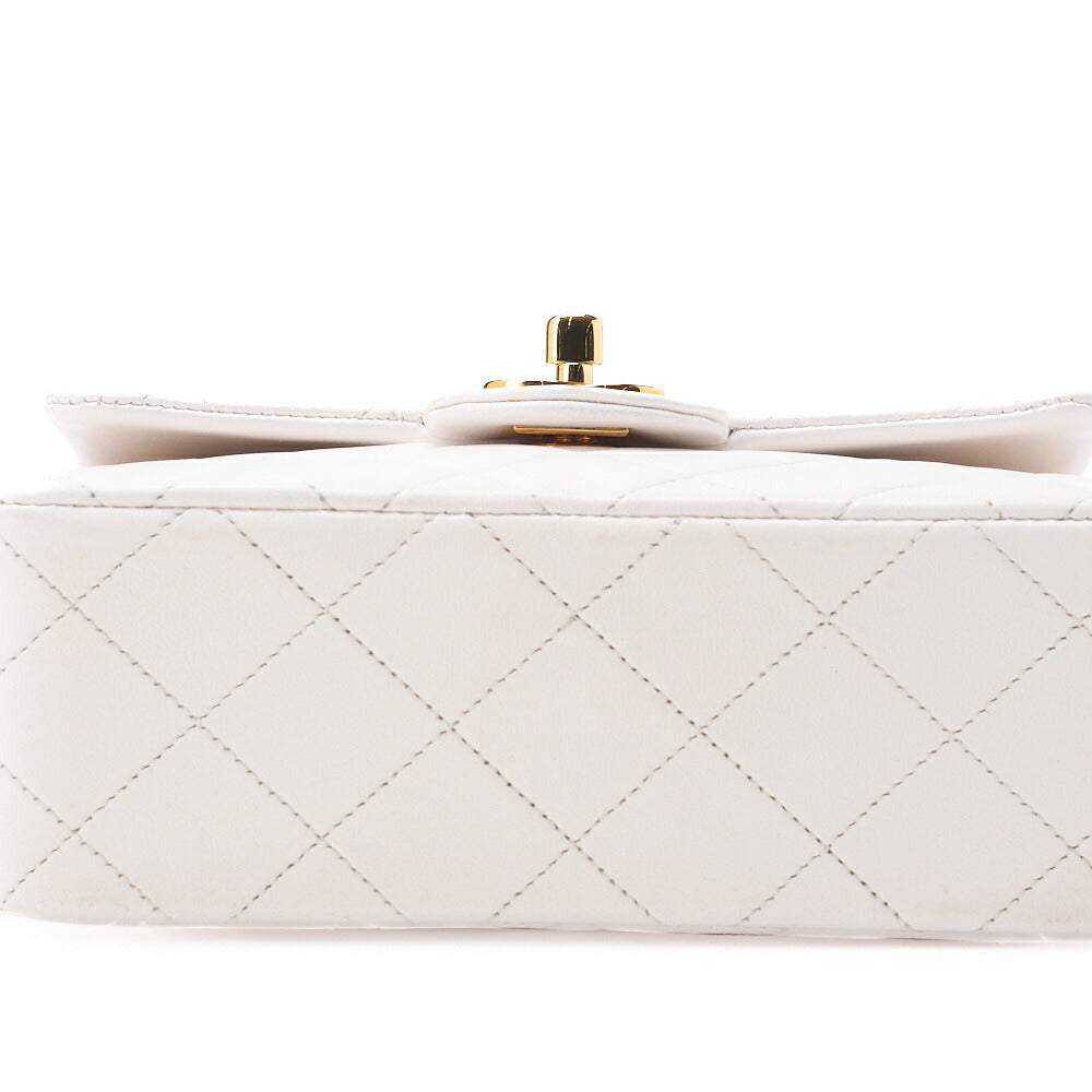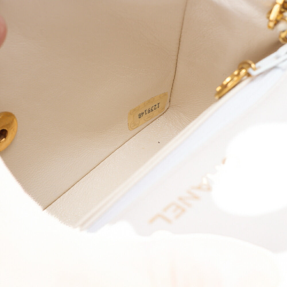 CHANEL Chain Shoulder Bag Mini Matelasse 18cm Lambskin White Single Flap Turnlock Gold-Tone Hardware, Pre-Owned