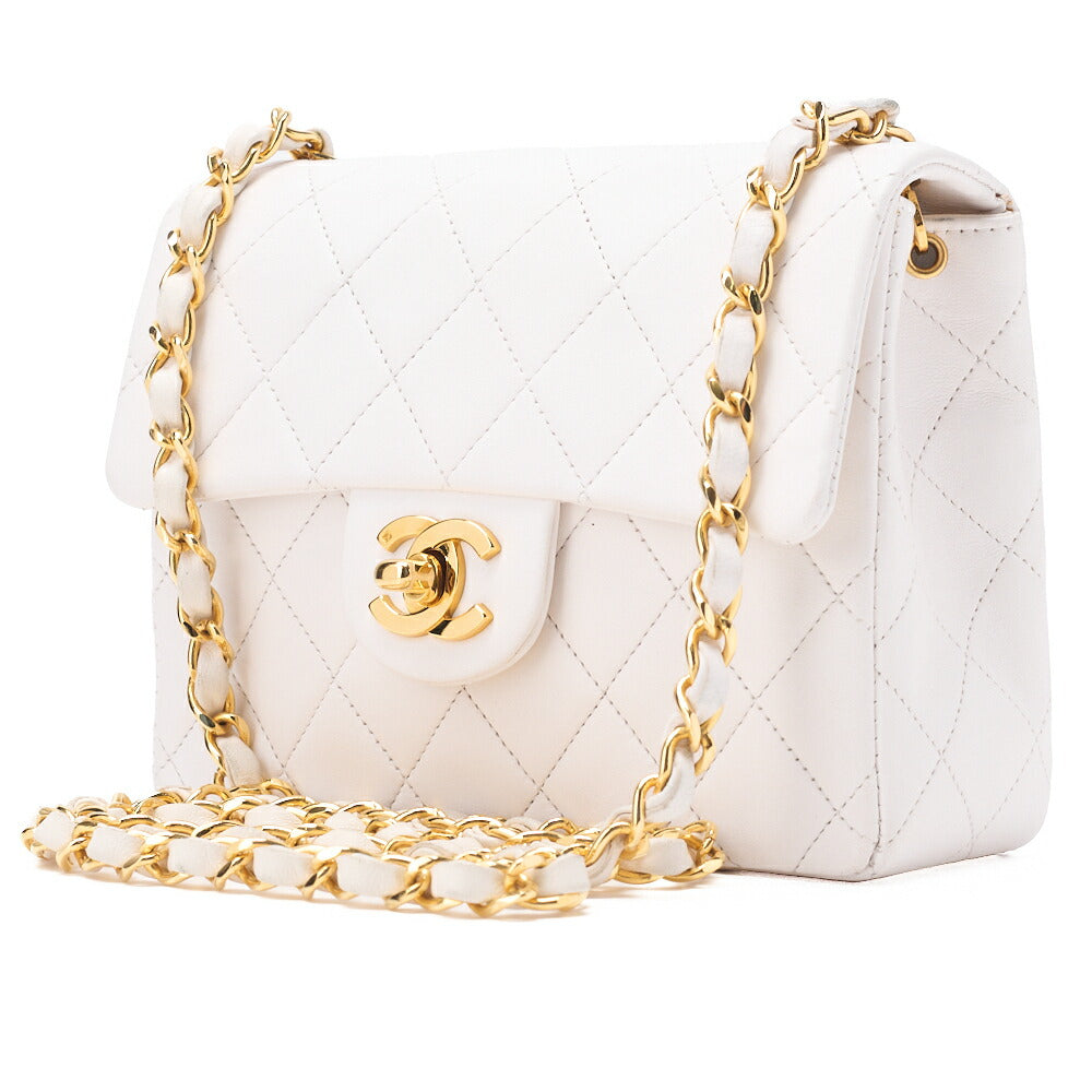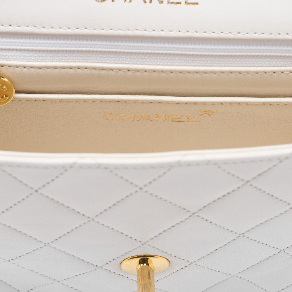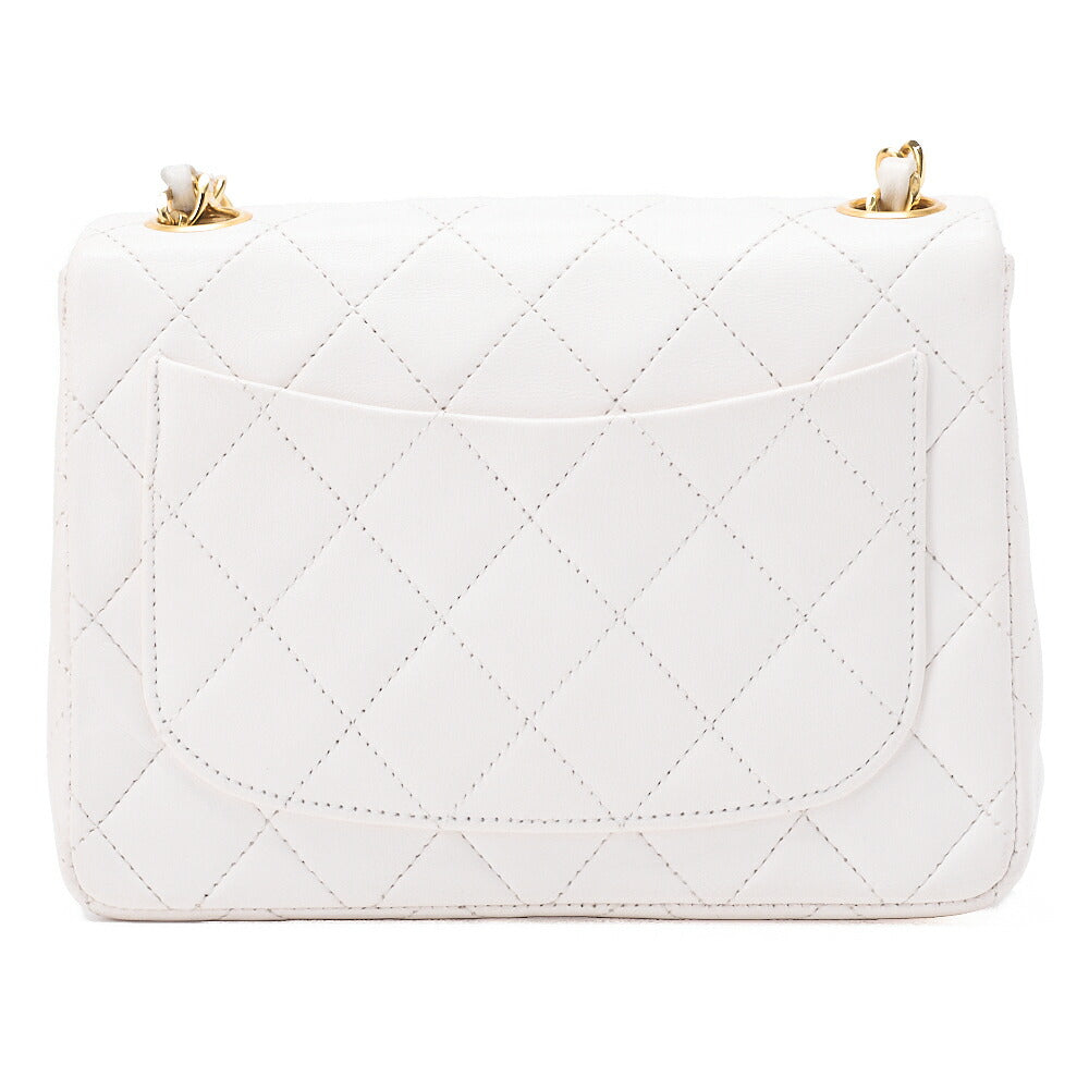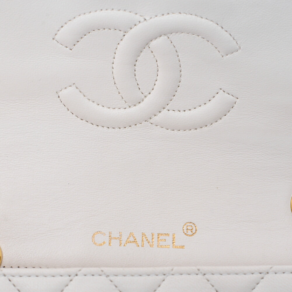 CHANEL Chain Shoulder Bag Mini Matelasse 18cm Lambskin White Single Flap Turnlock Gold-Tone Hardware, Pre-Owned