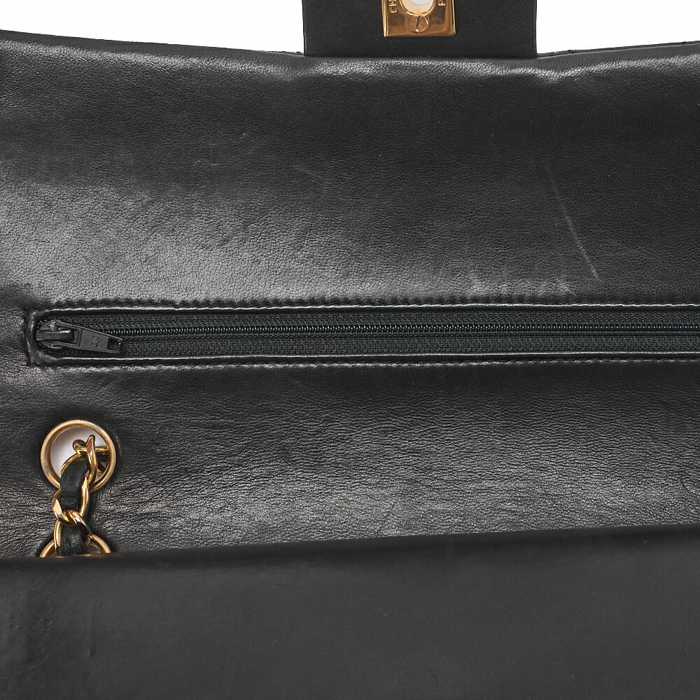 CHANEL Lambskin Matelasse W Flap 25 Chain Shoulder Black Gold-Tone Hardware, Pre-Owned