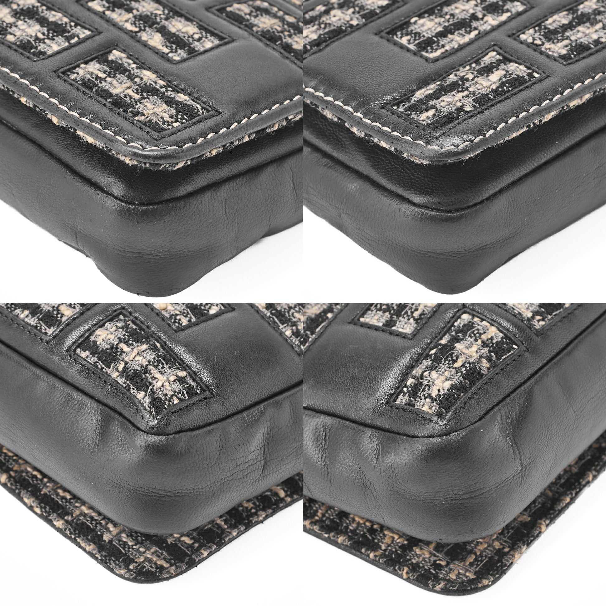 - Materials and finish: premium lambskin with tweed accents in deep black, complemented by silver-tone hardware.