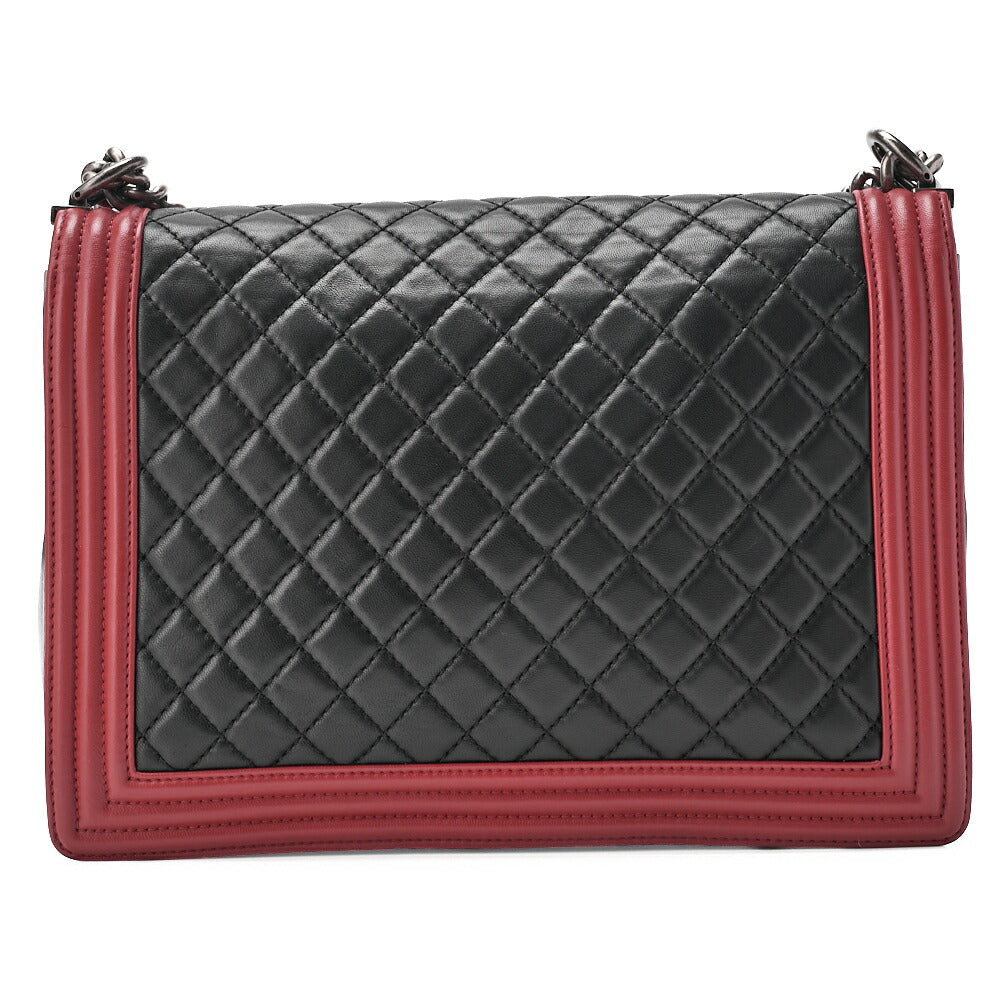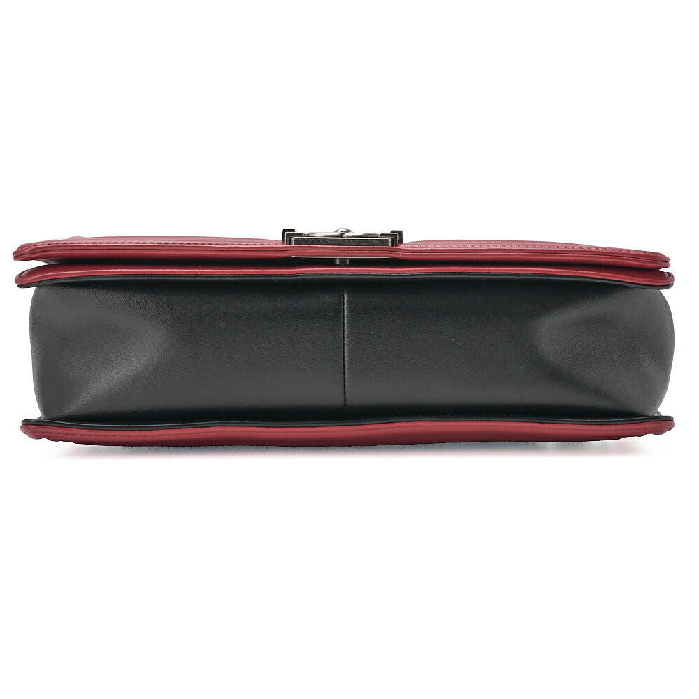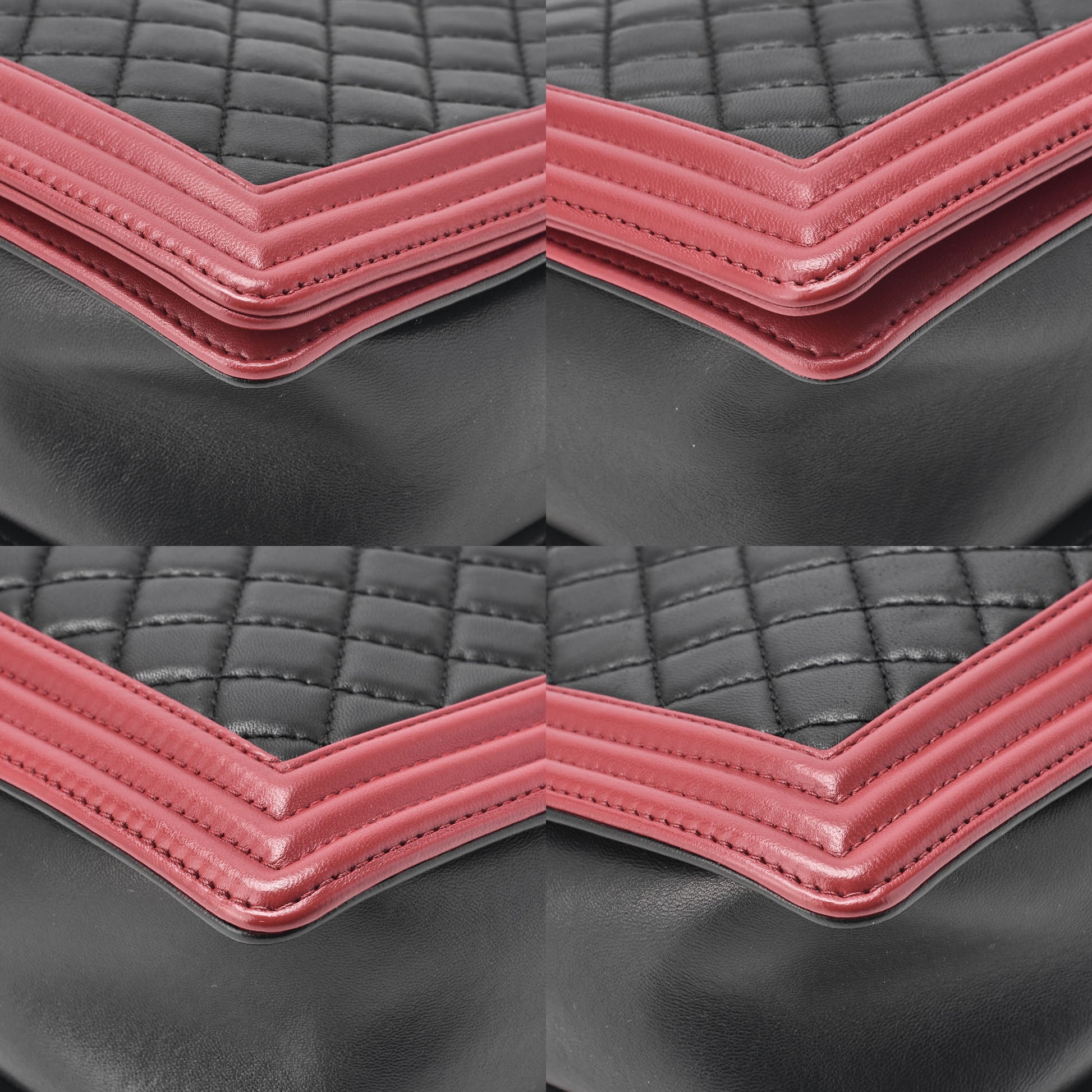 CHANEL Boy Chanel Matelasse Chain Shoulder Lambskin Black & Red Large Size Silver-Tone Hardware, Pre-Owned