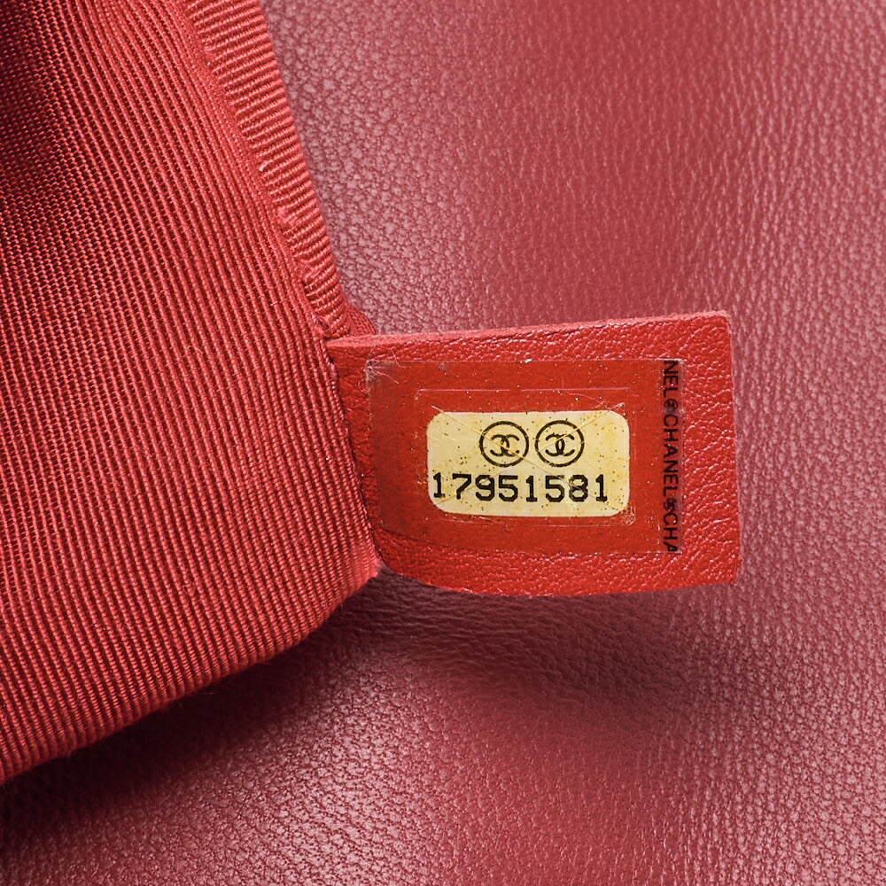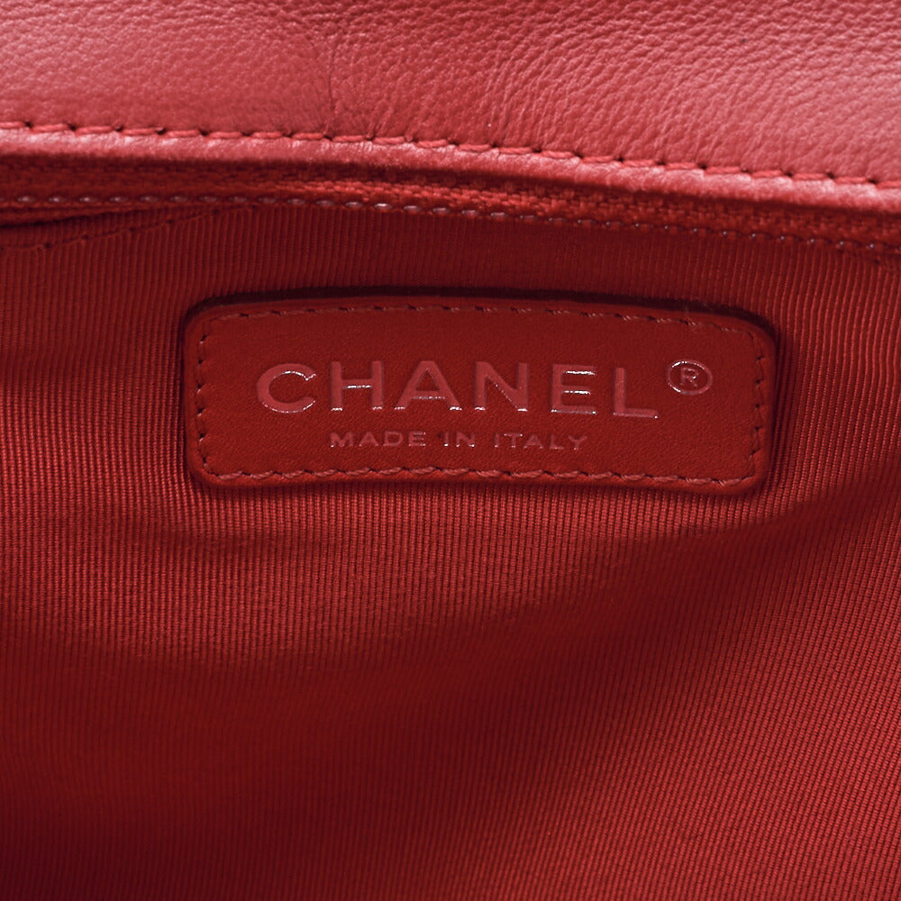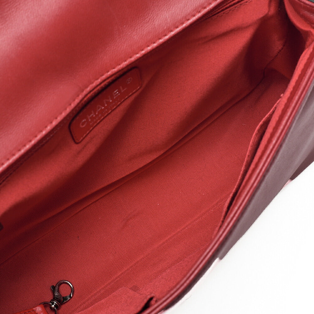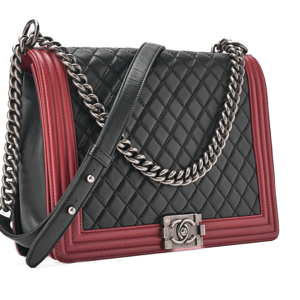 CHANEL Boy Chanel Matelasse Chain Shoulder Lambskin Black & Red Large Size Silver-Tone Hardware, Pre-Owned