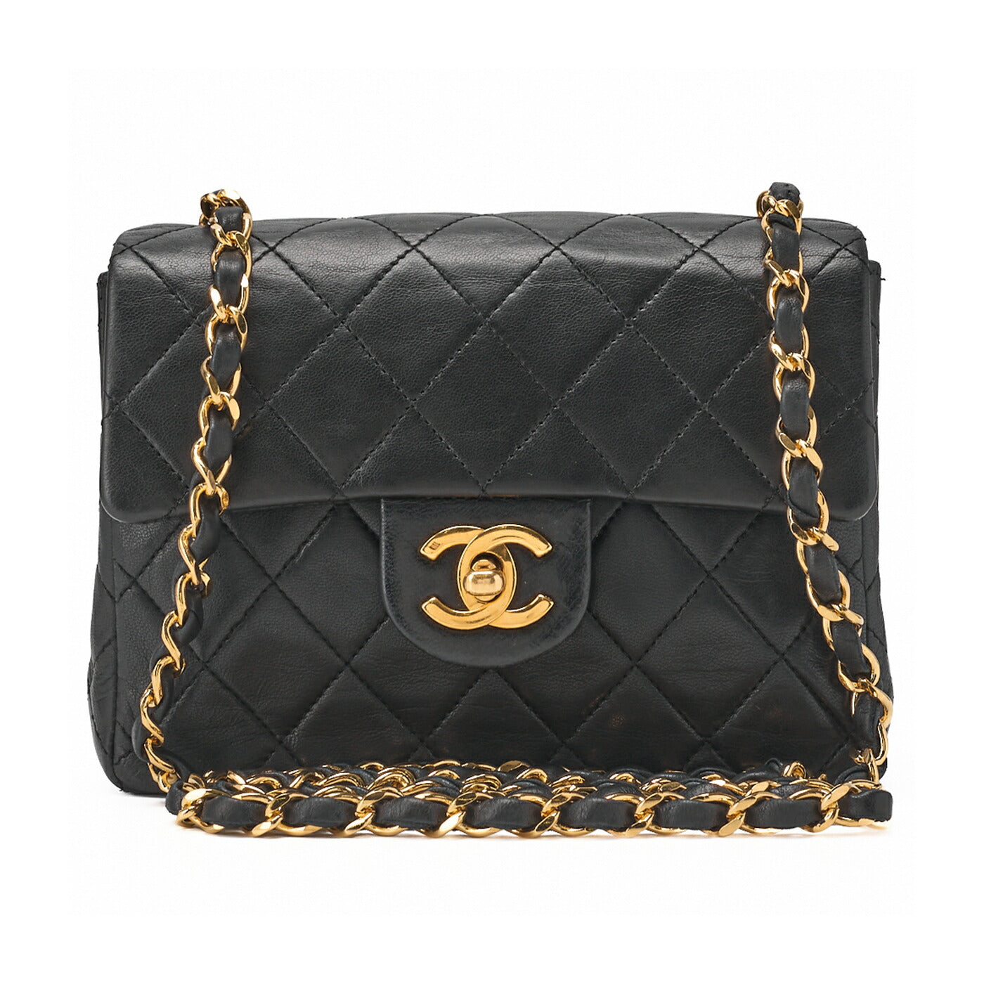 CHANEL Chain Shoulder Bag Mini Matelasse 18cm Lambskin Black Single Flap Turnlock Gold-Tone Hardware, Pre-Owned