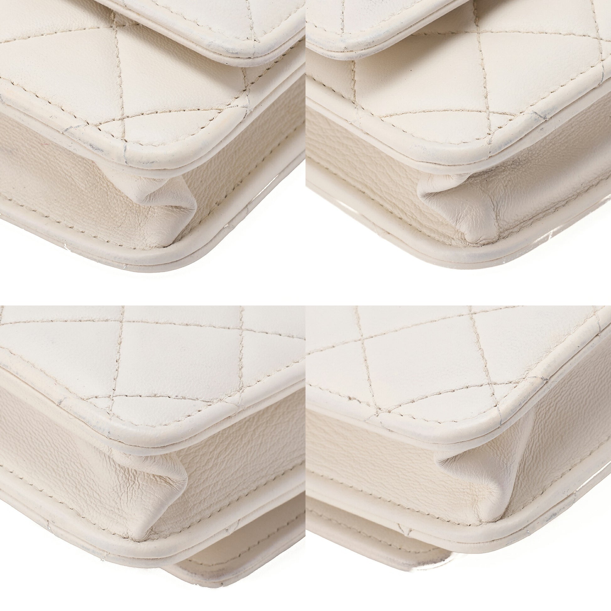 - Material & finish: lambskin, matelassé quilting, white color, gold-tone hardware