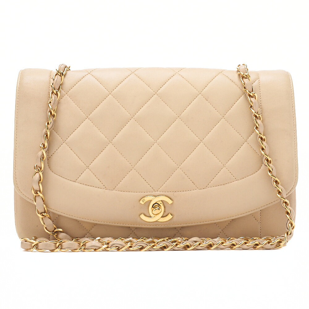 CHANEL Matelasse Diana Flap 25cm Chain Shoulder Lambskin Beige Gold-Tone Hardware, Pre-Owned