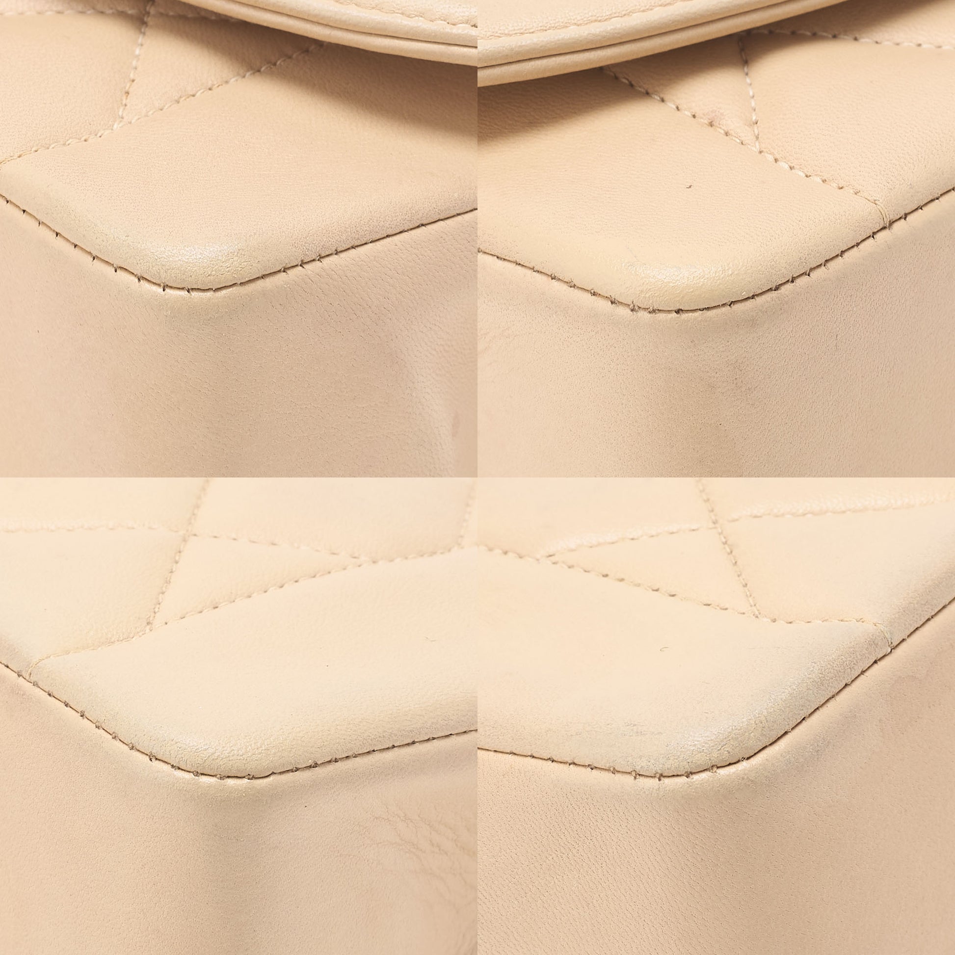 - Material & Color: Genuine lambskin in Beige with gold-tone hardware