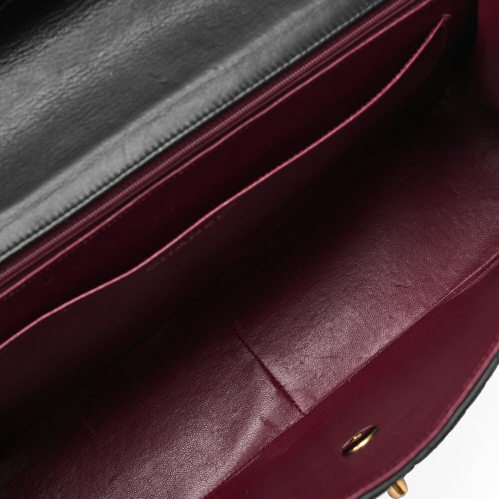CHANEL Chain Shoulder Bag Deca Matlasse 34cm Lambskin Black Gold-Tone Hardware, Pre-Owned