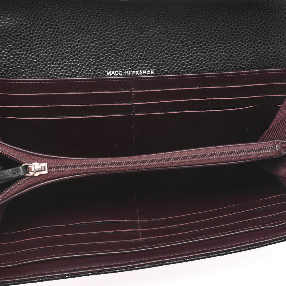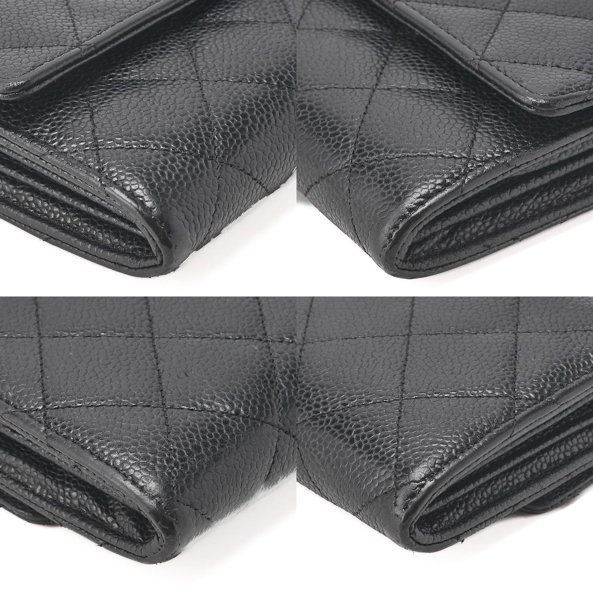 CHANEL Matelasse Bi-Fold Long Wallet Caviar Skin Black Silver-Tone Hardware, Pre-Owned