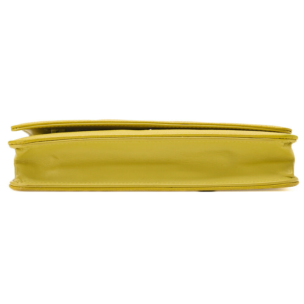 CHANEL Shoulder Bag Chain Wallet Caviar Skin Yellow Silver Fittings Push Lock Coco Mark Brand [Used] [Free Shipping]