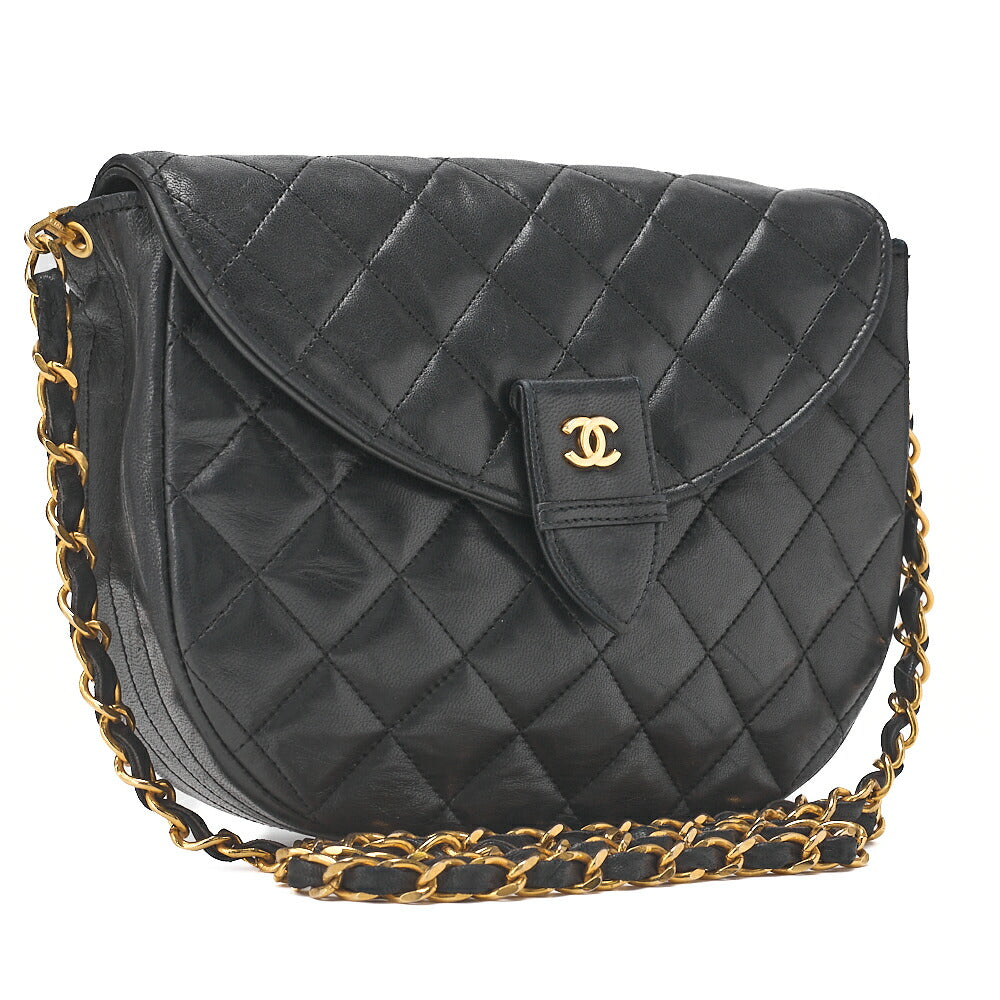 CHANEL Lambskin Matelasse Half Moon Push Lock Chain Shoulder Black Gold-Tone Hardware, Pre-Owned