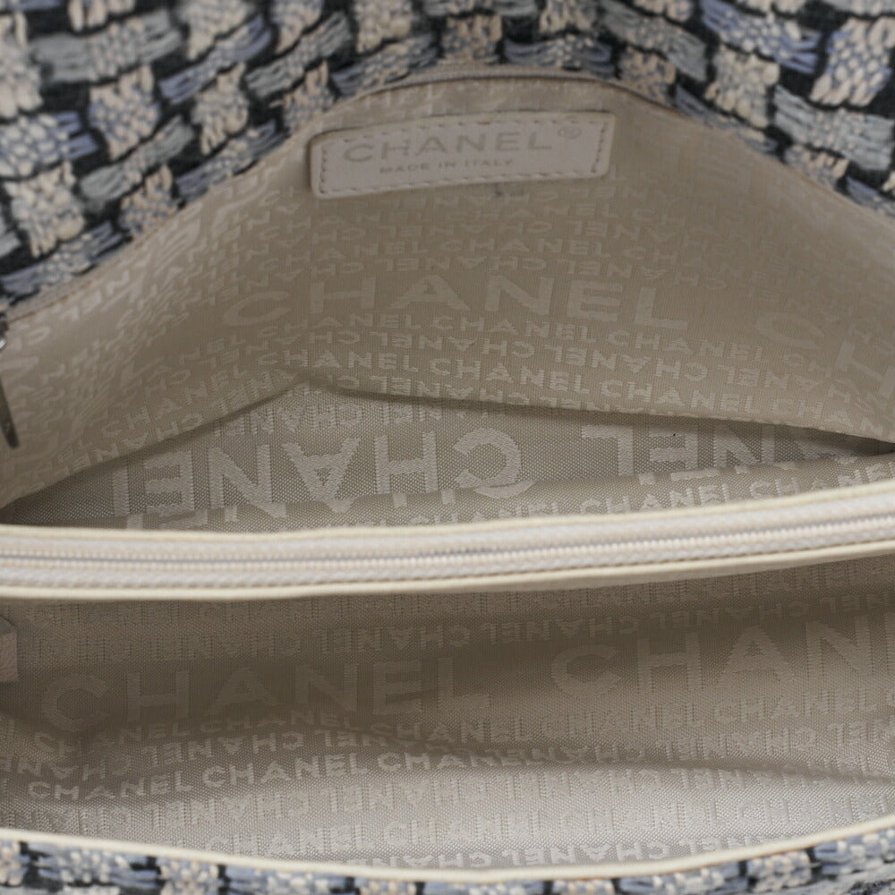 CHANEL Matelasse Bicolore Push Lock Chain Shoulder Leather x Cotton White Silver-Tone Hardware, Pre-Owned
