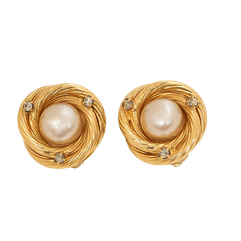 CHANEL Earrings 93A Rheinstone x Faux Pearl Gold Gold-Tone Hardware, Pre-Owned