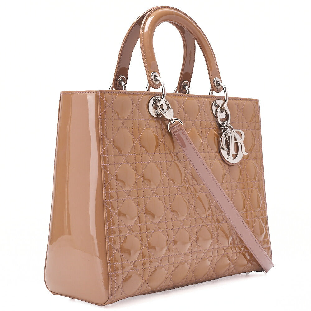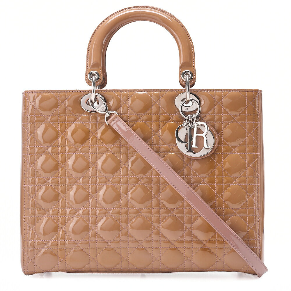 Dior Lady Dior Canage Handbag Large Size Enamel Silver -Tone Hardware, Pre-Owned
