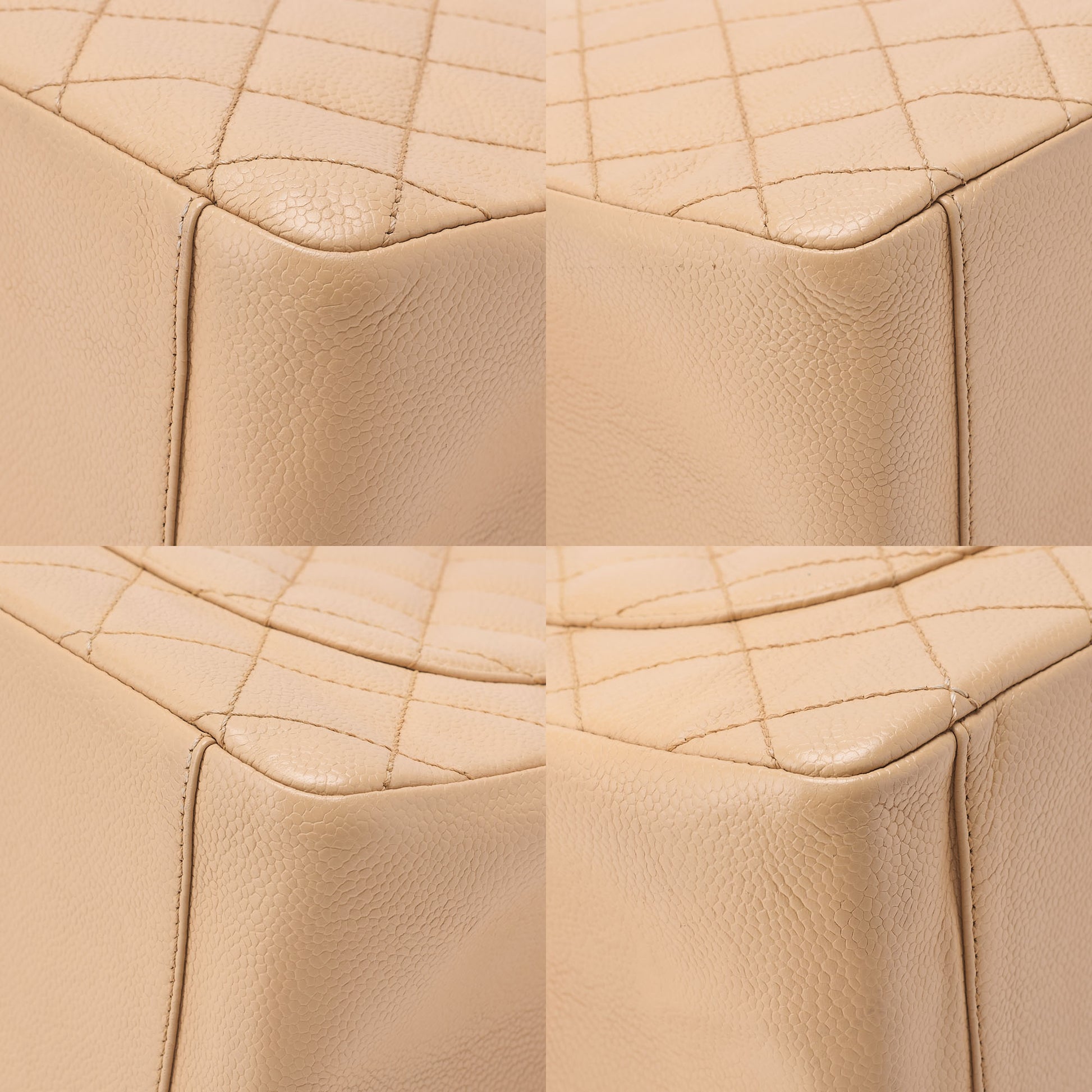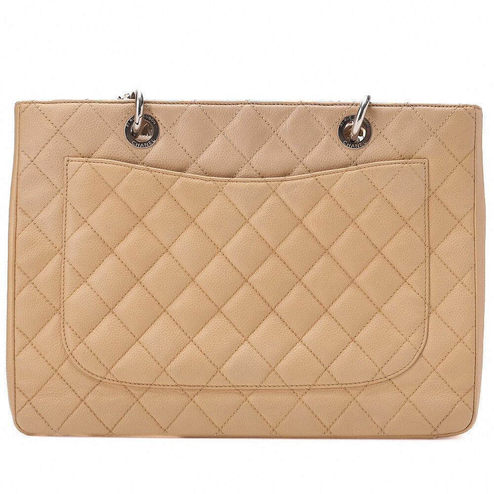 CHANEL Tote Bag Matelasse Caviar Skin Cocomark GST Double Chain Tote Beige Silver-Tone Hardware, Pre-Owned