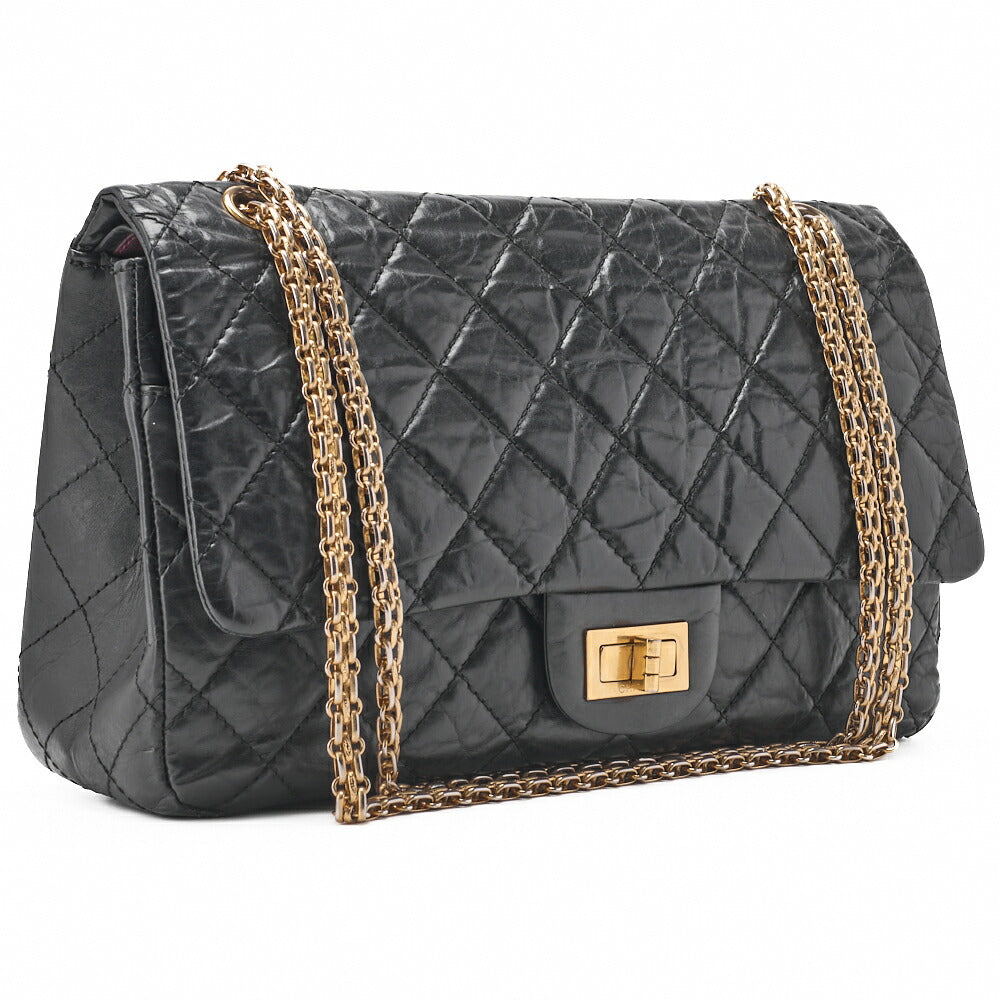 CHANEL Chain Shoulder Bag Matelassé 2.55 Vintage Calf Large Size Black Gold-Tone Hardware, Pre-Owned