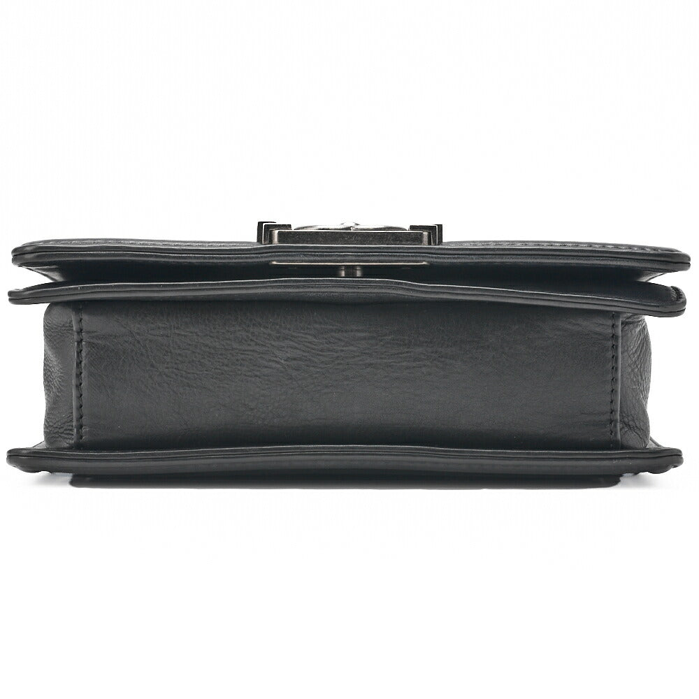 CHANEL Boy Chanel Diamond Stitch Chain Shoulder Calfskin Black Mini Size Silver-Tone Hardware, Pre-Owned