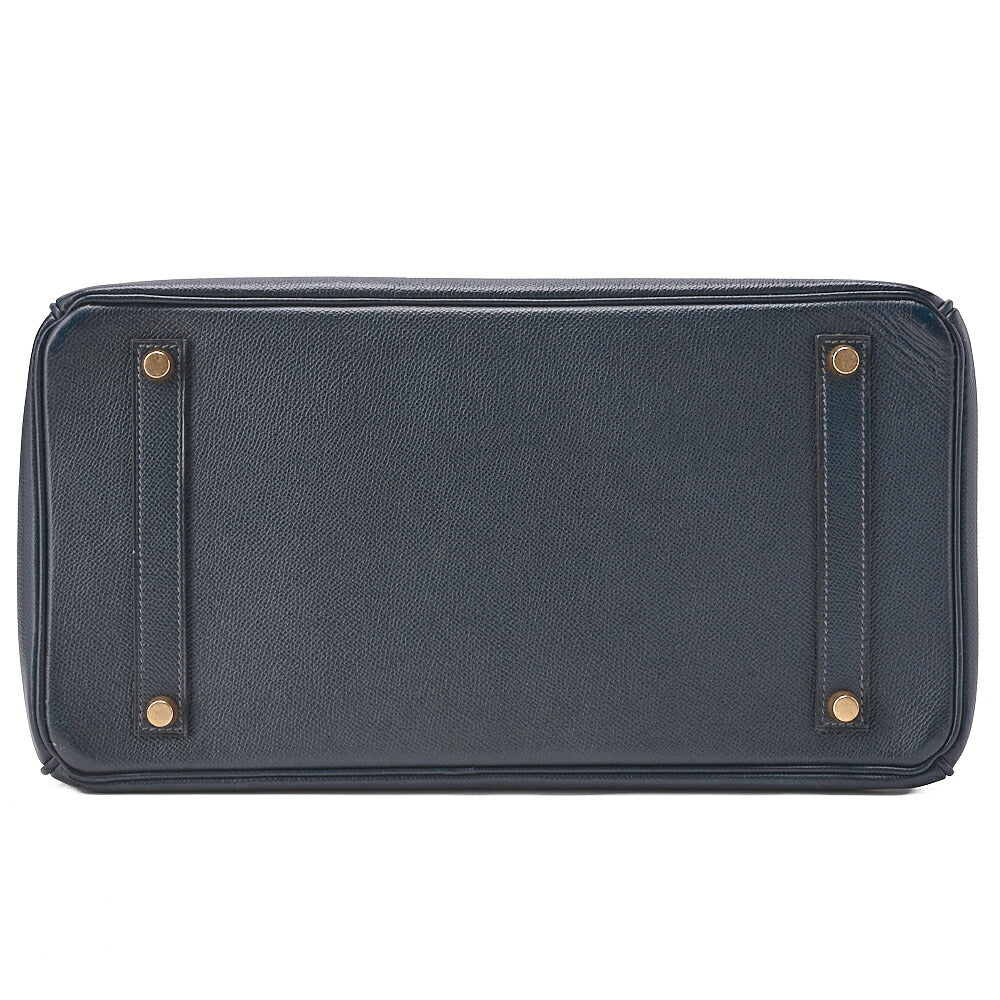 HERMES Birkin 35 Handbag Epson Blue Indigo Gold-Tone Hardware, Pre-Owned