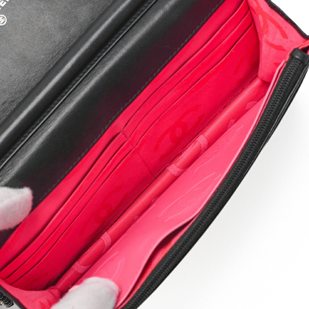 CHANEL Cambon Line Chain Wallet Calfskin Black Silver-Tone Hardware, Pre-Owned