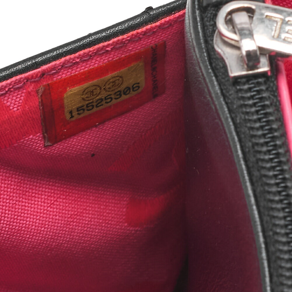 - Material & color: Calfskin leather in black with silver-tone hardware.